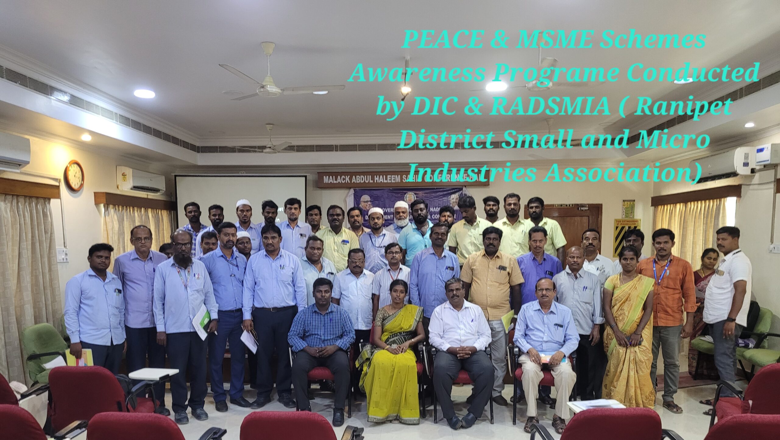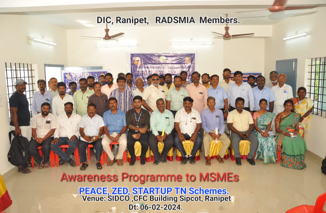 “Ranipet District Small and Micro Industries Association (RADSMIA) is a representative body formed to support, protect, and advance the interests of small and micro industries in Ranipet District.